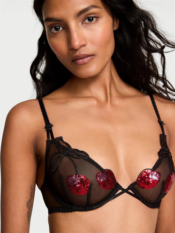 En sevdiğin yanını Sevgililer Günü’nde ve sonrasında öne çıkarmak için bu transparan ve ışıltılı demi sütyeni özenle seçtik. Seksi siyah şifon kumaş, parlak payetli kiraz işlemeleri ve hafif ışıltılı yaprak detaylarıyla hareket kazanıyor. Ortaya çıkan etki; eğlenceli, iddialı ve tamamen taze.