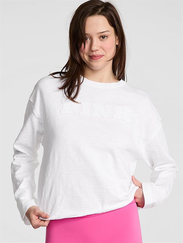 Tüy kadar hafif olan bu havadar pamuklu Sweatshirt ile sevimli görünün ve (gerçekten) serin hissedin. Dikişsiz kenarlar tasarımcının imzasıdır. Uyumlu bir görünüm için sportif şort veya eşofman altları ile kombinleyebilirsiniz