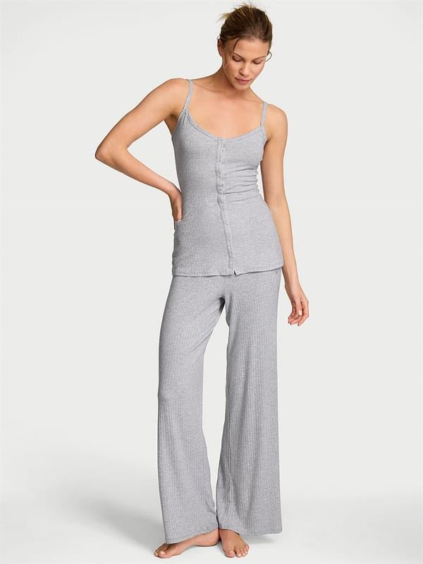 SoSoft™ Modal Geniş Fitilli Düğmeli Önü Açık Askılı Bluz ve Pantolon Takımı