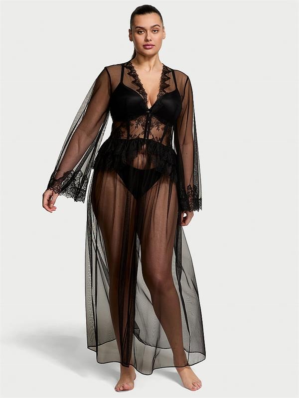 Viktorya döneminden esinlenilmiş vurgular ve korse etkisi ile şeffaf tül ve gül dantelden oluşan geniş bir uzunlukta vintage cazibesine kapılın. Esnek kemerler şekil verirken zarif peplum detayı belinizi vurgular.