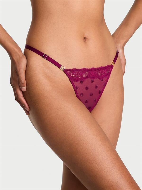 Minimalizmin en seksi hali! Transparan tül üzerine işlenen puantiyeler ve dantel detaylarla tasarlanan bu V-String, cesur ve sofistike bir görünüm sunuyor. Zarif tasarımıyla hem günlük hem özel anlarda sana göz kırpıyor.