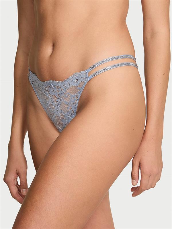 Işıltısı ilk bakışta fark edilen bir özel seri parçası. Serin tonlu dantelin üzerine işlenen ışıltılı dokunuşlar, bu Brazilian modeli çarpıcı hale getiriyor. Çift askılı kristal taşlı yan detaylar modern ve iddialı bir görünüm sunar.